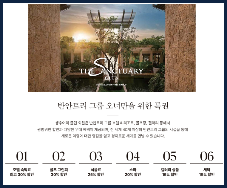 - 전 세계 반얀트리 리조트·골프장과 연계 혜택
