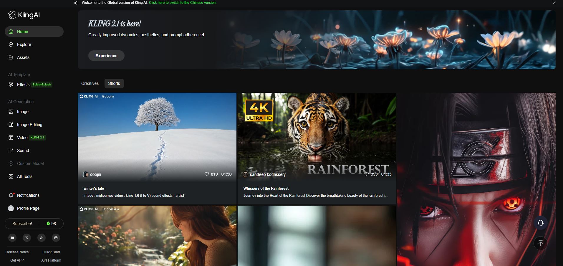 클링 AI는 무료로도 사용이 가능합니다.
