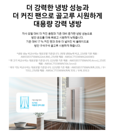 프리미엄 디자인과 강력한 냉방 성능을 모두 갖춘 제품으로 고급스러운 인테리어에도 잘 어울립니다.