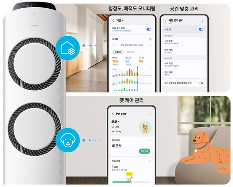 거실과 방을 동시에 커버할 수 있어 가족 단위 사용자에게 추천되는 조합입니다.